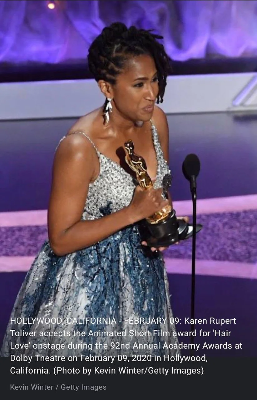 I was incredibly proud to show our children the videos of Kwak Sin Ae and Miky Lee (both women) accepting the historic Best Picture award on behalf of "Parasite" and to show them Karen Rupert Toliver accepting on behalf of "Hair Love," which I was also so, so happy to see win last night. As Toliver said during her speech, "Representation matters deeply" and last night the Oscars took a step forward in highlighting that.